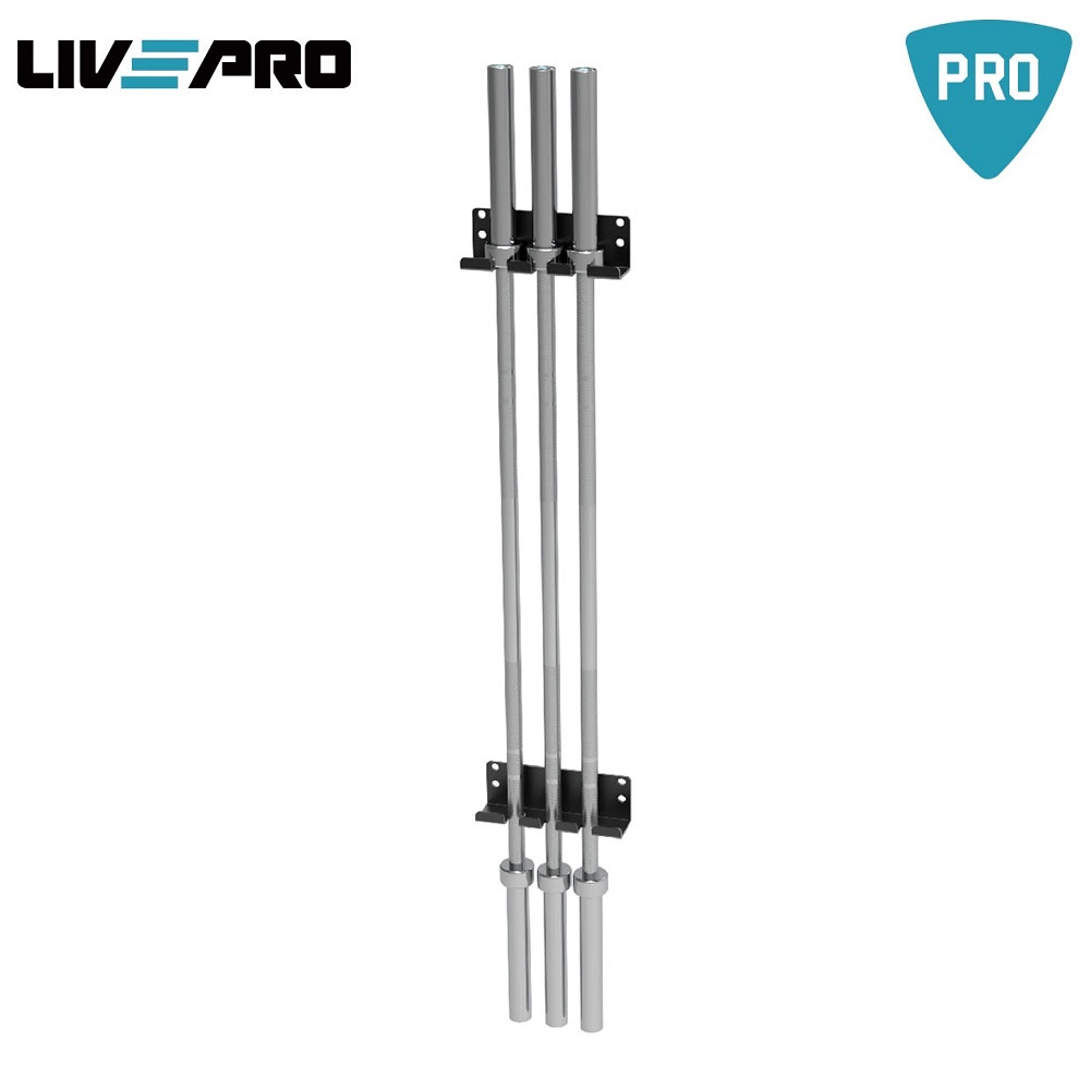 Αυτή η επιτοίχια βάση της LivePro, σας επιτρέπει να αποθηκεύετε έως 3 μπάρες με κάθετη τοποθέτηση, ώστε να κρατάτε το χώρο σας τακτοποιημένο.