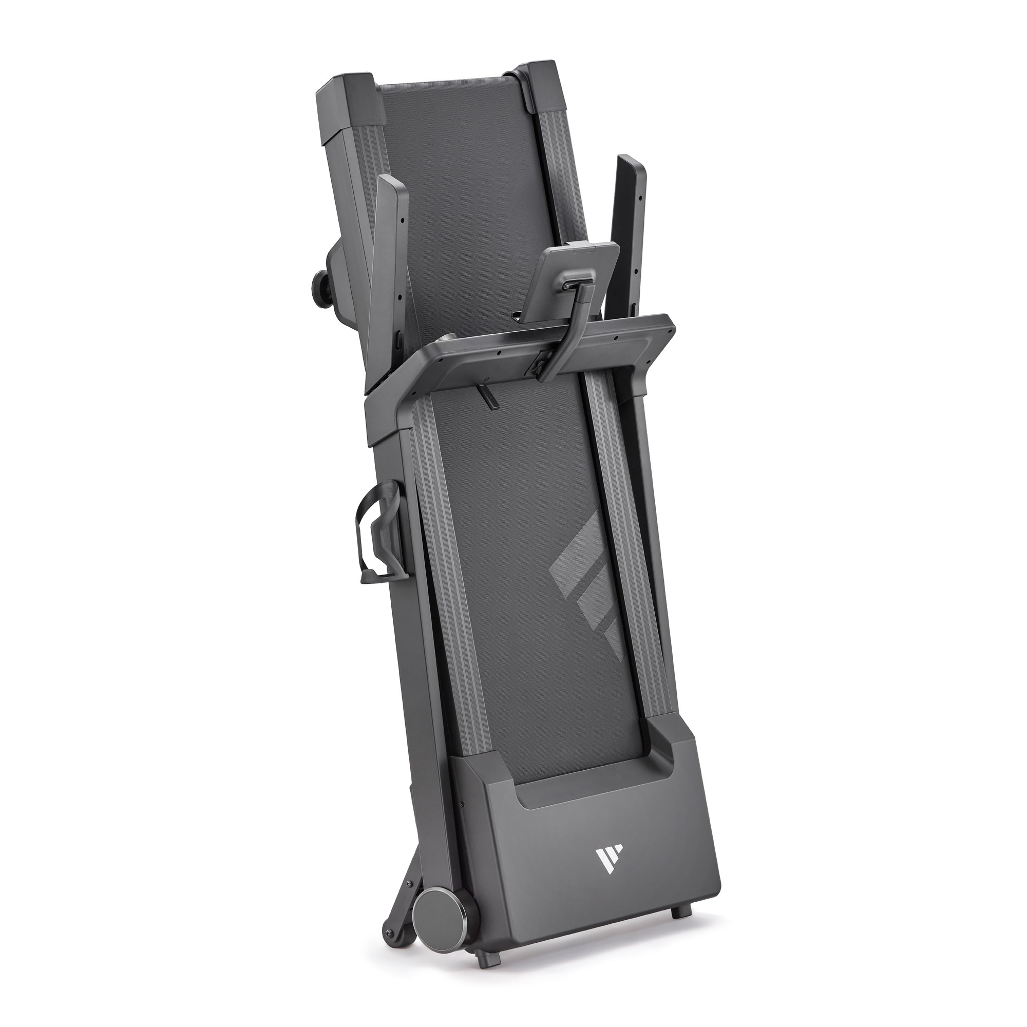 Η αναδίπλωση δεν ήταν ποτέ τόσο εύκολη! Το μόνο που έχετε να κάνετε είναι να περιστρέψετε απαλά τις 2 χειρολαβές και ακολούθως να ρίξετε τις δύο κολώνες ώστε να φέρετε το διάδρομο σε επίπεδη αναδίπλωση.Σε αυτή τη θέση, ο Adidas T24c έχει πάχος μόλις 29 cm, που σημαίνει ότι μπορείτε να τον μεταφέρετε και να τον αποθηκεύσετε πολύ εύκολα, ακόμη και κάτω από το κρεβάτι σας!