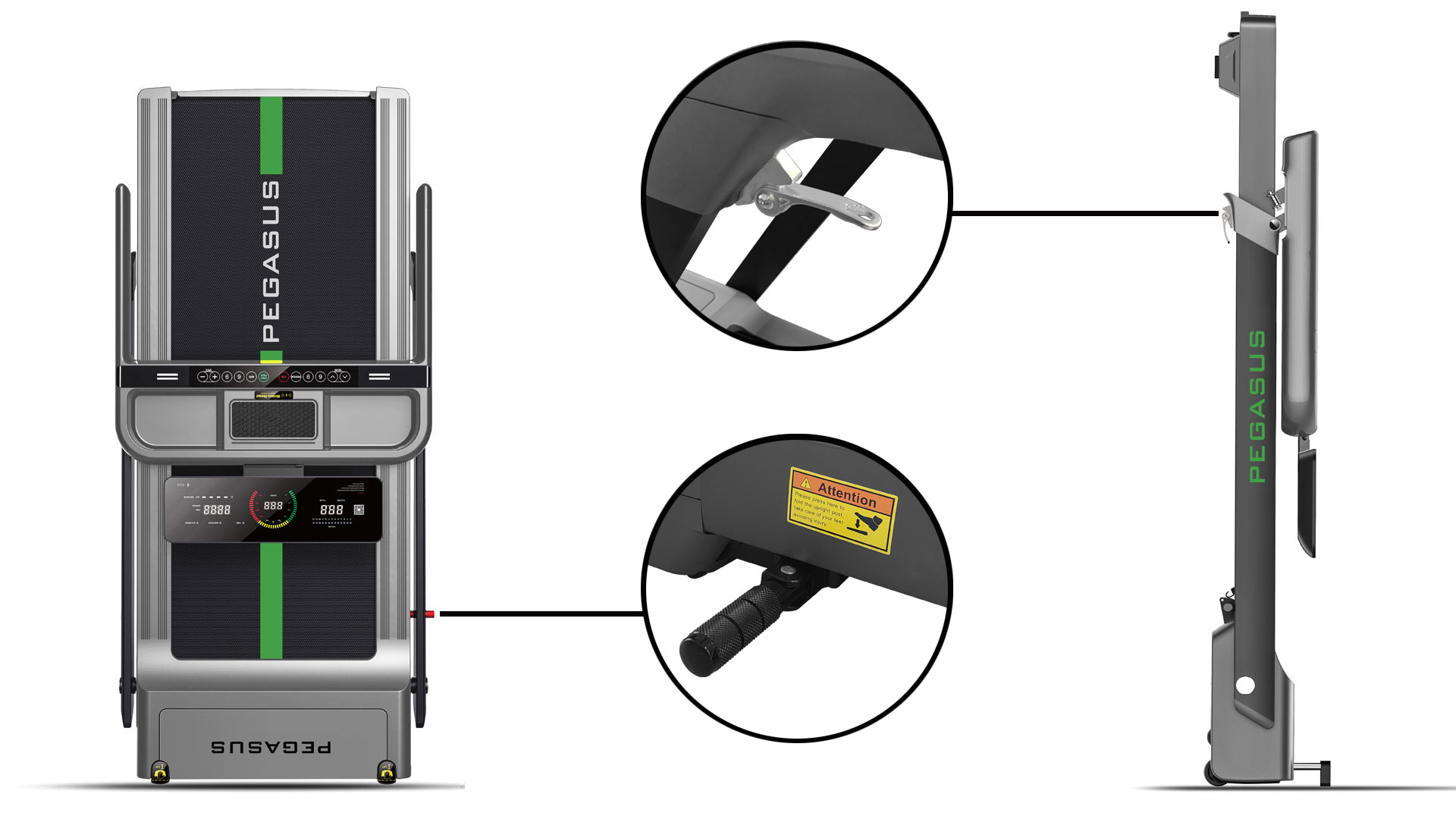 Παρά τις άνετες διαστάσεις του, ο RunFlex είναι ιδανικός για περιορισμένους χώρους, προσφέροντας γρήγορη και πλήρη αναδίπλωση σε πάχος μόλις 25.5cm!Αρχικά σηκώστε τους 2 διακόπτες κάτω από τις χειρολαβές και ανασηκώστε την κονσόλα ώστε να έρθει σε ευθεία με τους ορθοστάτες και διπλώστε την οθόνη. Στη συνέχεια πατήστε με το πόδι το μοχλό που θα βρείτε στο αριστερό κάτω μέρος του δαπέδου και διπλώστε τις κολώνες προς τα κάτω.