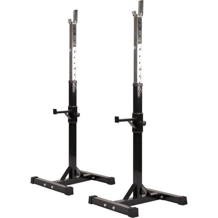 Το σετ περιλαμβάνει δυο τεμάχια Με ρυθμιζόμενο ύψος από 92 έως 145 εκατοστά, σταθερή βάση και πολύ στιβαρή κατασκευή θα ικανοποιήσουν την πλειονότητα των χρηστών, ακόμα και για σκουώτ (εκτός από τους αρκετά ψηλούς). Με ελαστικά καπάκια στη βάση για προστασία του πατώματος από γδαρσίματα. Δυνατότητα να σηκώνουν πάνω από 250kg (το ζεύγος). Κορυφαία ποιότητα, φινίρισμα και σταθερότητα. Μεγάλη αντοχή για μέγιστη ασφάλεια στην άσκηση Ενισχυμένη κατασκευή πλαισίου: 50 x 50 x 1.5 mm Διαστάσεις (ΜxΠxΥ): 50x57x92-145cm (το τεμάχιο) Καθαρό βάρος: 17 κιλά Βάρος με συσκευασία: 19 κιλά
