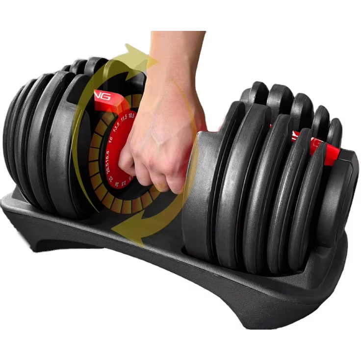 Αντί για τους παραδοσιακούς δύο περιστροφικούς διακόπτες στις άκρες του αλτήρα, ο συγκεκριμένος μηχανισμός επιτρέπει την επιλογή των κιλών με μία απλή περιστροφή της κεντρικής λαβής.